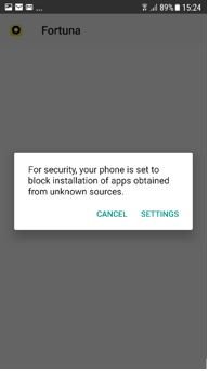 - Notă: Aplicația Fortuna provine din surse sigure, nu este niciun motiv de teamă. Motivul pentru care este recunoscută ca sursă nesigură este faptul că nu poate fi accesată direct din Magazinul Google Play.