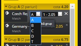 În dreptul fiecărui eveniment regăsit pe biletul tău de pariuri vei avea la dispoziție opțiunea de a-l muta în grupul dorit iar dreptul fiecărui grup ți se va afișa numărul total de evenimente din grupul respectiv precum și cota totală a acestuia. De asemenea, Fortuna vine în ajutorul tău, puându-ți la dispoziție opțiunea de ”Super-bilet” ce te poate ajuta în navigarea ușoară printre grupurile biletului de pariuri prin sistemul ”Drag&Drop”.