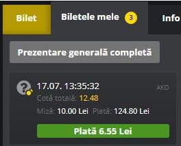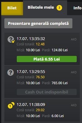 În situația în care această opțiune nu este disponibilă petru biletul tău de pariuri, pe biletul tău de pariuri va fi afișat mesajul ”Cashoul indisponibil”