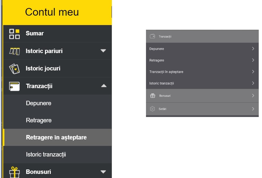 Poți urmări din contul tău de joc stadiul cererii de retragere, la rubrica ”Retragere în așteptare” (desktop) sau ”Tranzacții în așteptare” (aplicație mobilă).